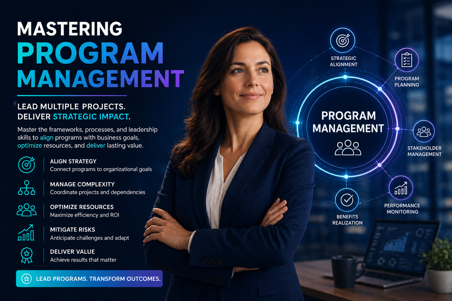 Mastering Program Management is a self‑paced online course designed for professionals who lead complex, multi‑project initiatives and want to deliver strategic results with confidence. The curriculum blends practical frameworks, real‑world case studies, and actionable templates to build strong program leadership skills.