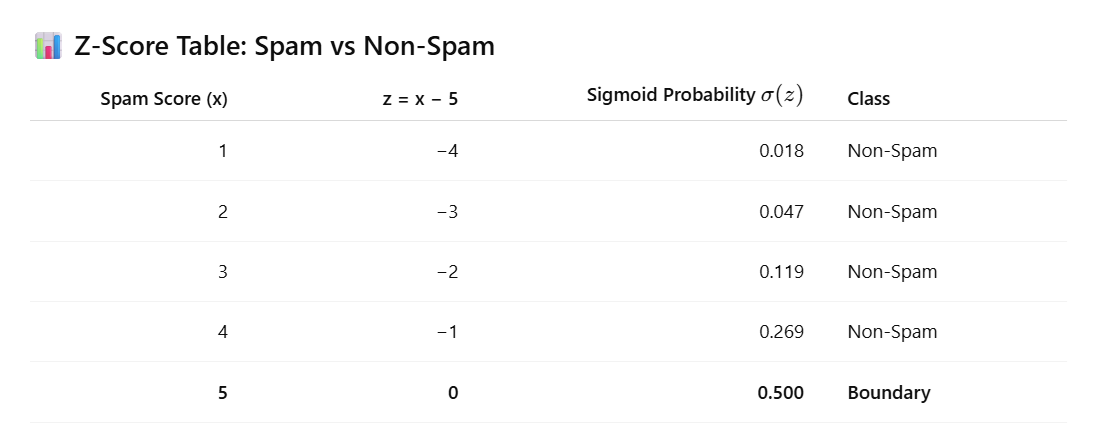 Explanation: 0.5 means the model is unsure between both classes.