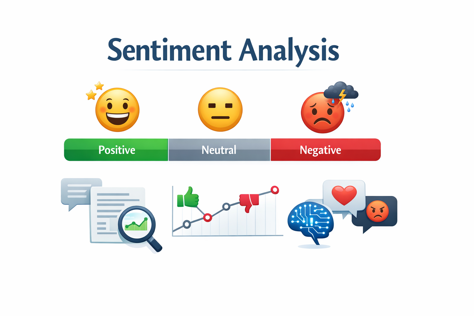 Understand how your customers truly feel with our comprehensive sentiment analysis solutions. We transform unstructured text from reviews, social media, support tickets, and surveys into clear, actionable insights. By combining rule-based methods with modern machine learning, we detect positive, negative, and neutral opinions, as well as key emotions and recurring themes. Use these insights to improve products, refine messaging, and respond faster to emerging issues. Whether you are a startup or an established enterprise, our sentiment analysis helps you make smarter, data-driven decisions and build stronger relationships with your audience.
