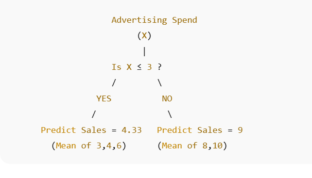 How it works: Splits the data into subsets based on feature values using conditions (like yes/no questions), forming a tree structure.